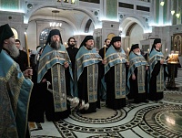 Богослужения возглавил ректор Академии и наместник Сретенского монастыря игумен Иоанн (Лудищев).