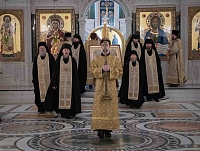 Божественную литургию возглавил ректор Академии и наместник Сретенского монастыря игумен Иоанн (Лудищев).