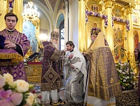 Божественную литургию возглавил Святейший Патриарх Московский и всея Руси Кирилл, ему сослужили архиереи, братия монастыря и выпускники академии.