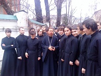 Богослужения возглавил ректор Академии и наместник Сретенского монастыря игумен Иоанн (Лудищев).