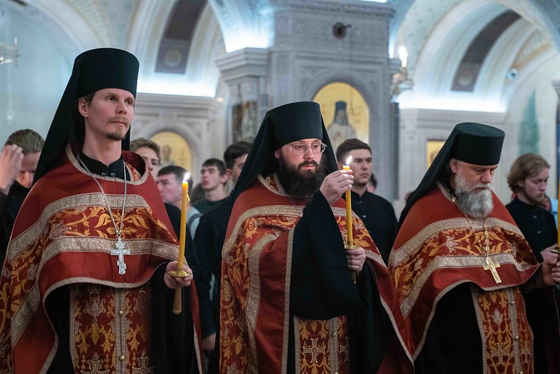 Когда мы стоим на молитве, то должны бодрствовать и прилежать к молению всем сердцем. Да удалится от нас всякое плотское и мирское помышление, и дух да помышляет только о том, о чем просит.