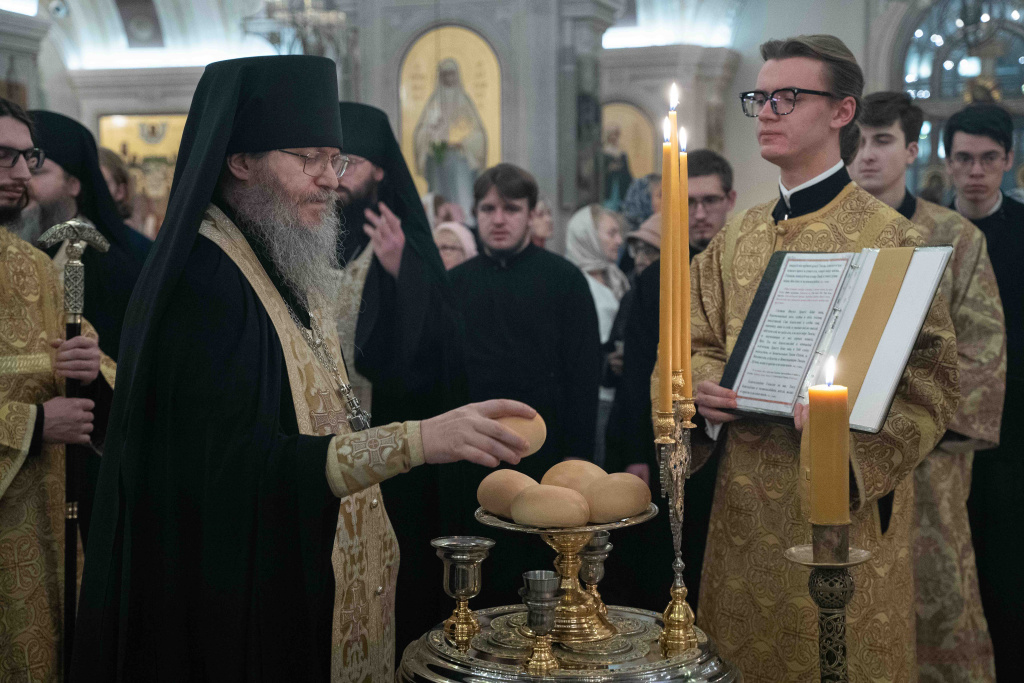 По окончании Божественной литургии насельники монастыря и студенты Академии совершили чин о панагии.