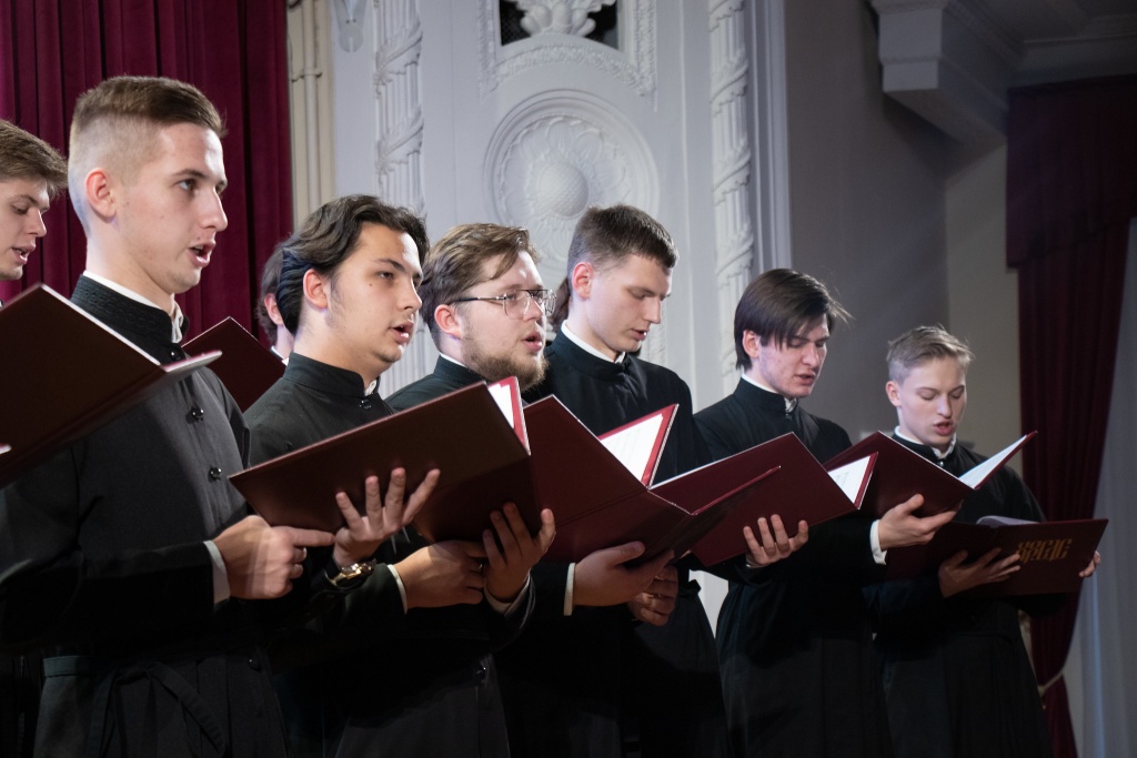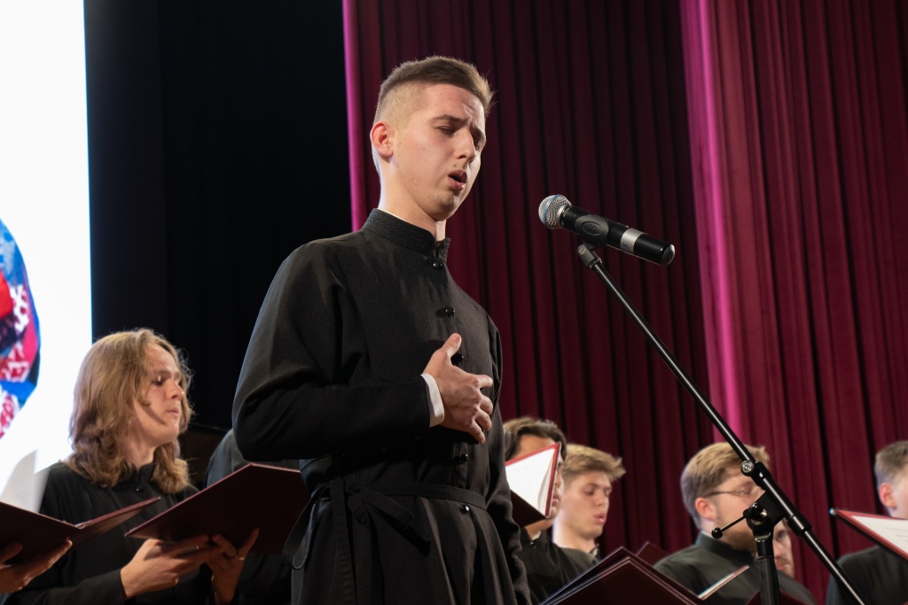Хор Сретенской духовной академии под руководством регента Марка Качанкина исполнил песнопение «Господь просвещение мое», а также светские произведения, ставшие классикой: «Песню о тревожной молодости», «Дороги» и «Этот мир».
