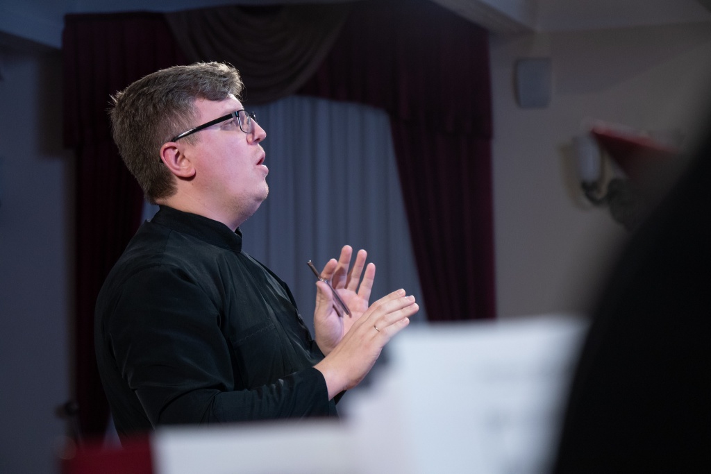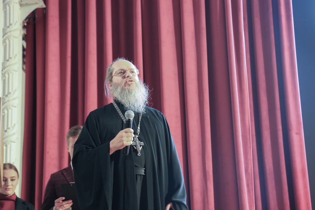 С напутственными словами к собравшимся обратились ректор Российской академии музыки имени Гнесиных Александр Сергеевич Рыжинский и ректор Сретенской духовной академии игумен Иоанн (Лудищев).