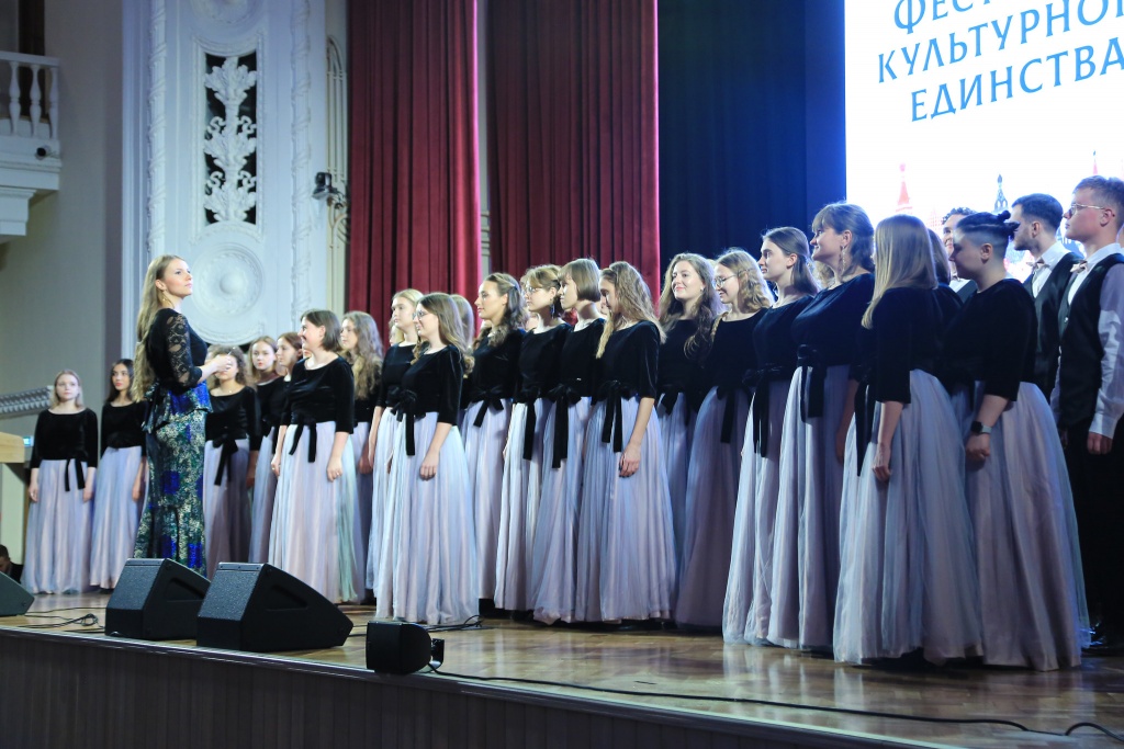 Хор Финансового университета под руководством Натальи Шелковской представил свою программу, в которую вошли духовный греческий распев «Хвалите имя Господне», народная «Смуглянка» и песня «Моя Москва».