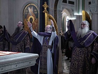 Была отслужена вечерня с литургией Преждеосвященных Даров, после которой совершен молебный канон святому великомученику Феодору Тирону с благословением колива.