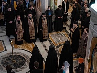 21 марта Предстоятель Русской Православной Церкви совершил чтение Великого покаянного канона в храме Воскресения Христова и Новомучеников и исповедников Церкви Русской.