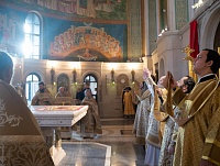 Раннюю Божественную литургию возглавил наместник монастыря игумен Иоанн (Лудищев).