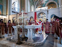 В ночь с 11 на 12 апреля, в праздник Светлого Христова Воскресения, в соборе Воскресения Христова и Новомучеников и исповедников Церкви Русской Сретенского монастыря были совершены пасхальные полунощница, утреня и Божественная литургия.