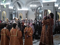 Вечером 11 марта, в среду второй седмицы Великого поста, в Сретенском монастыре наместник обители архиепископ Верейский Амвросий совершил Литургию Преждеосвященных Даров.
