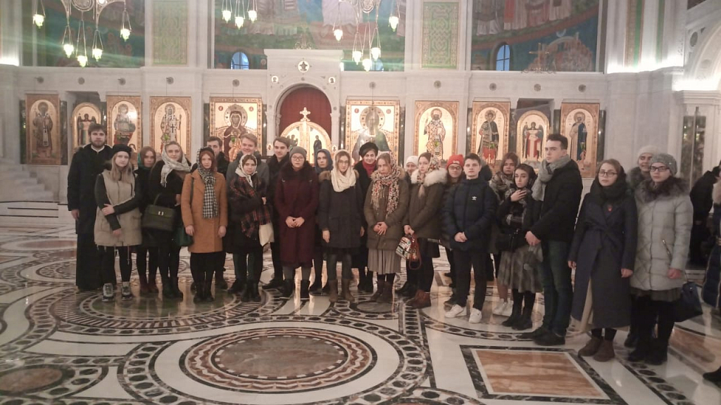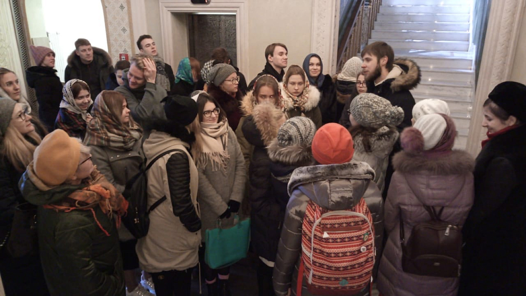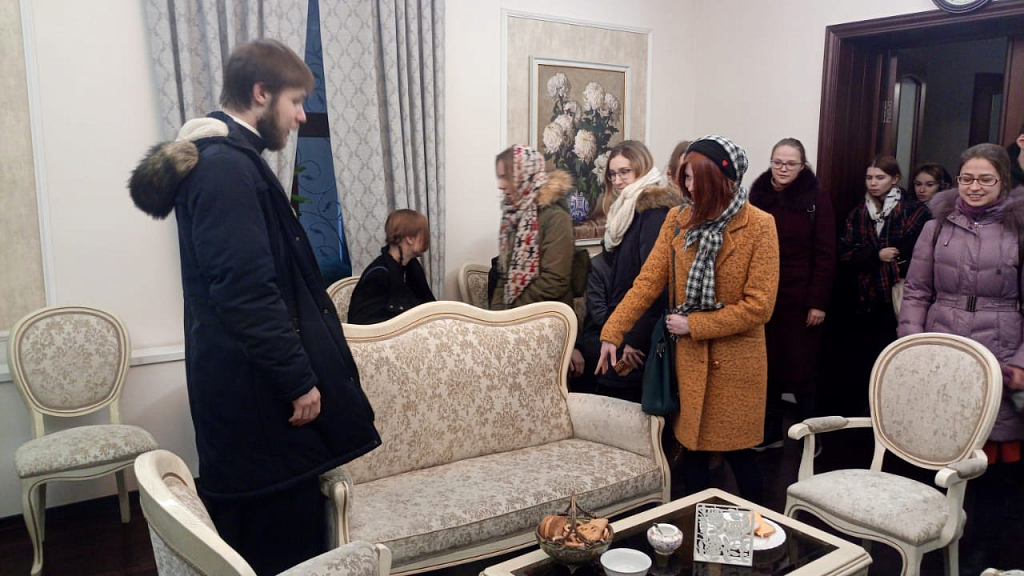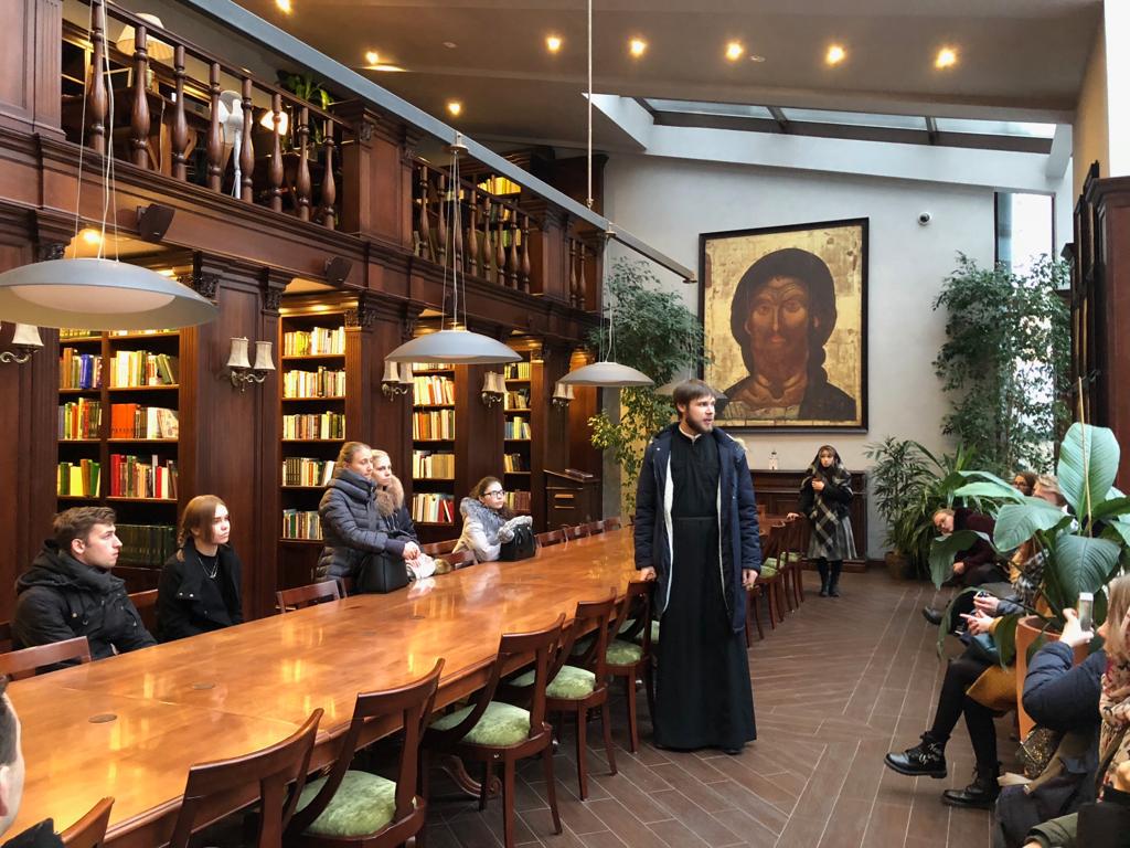 В Сретенской духовной семинарии существует практика проведения экскурсий для преподавателей и студентов других вузов. В этот раз в Сретенский монастырь приезжала группа из Российского государственного социального университета.